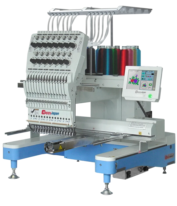 Průmyslové jednohlavé vyšívací stroje HappyJapan jsou určené pro malosériovou výrobu. Díky své robustní konstrukci jsou tyto stroje vhodné pro 3směnný provoz. Tyto průmyslové vyšívací stroje jsou vybaveny ovládacím panelem s dotykovým displejem v češtině a slovenštině stejně jako všechny ostatní modely tohoto předního japonského výrobce.