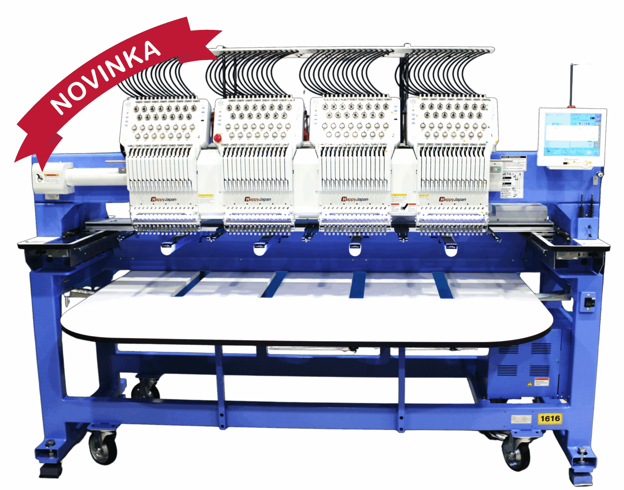 Průmyslové 2-12hlavé japonské vyšívací stroje HappyJapan nové generace jsou technologicky nejvyspělejšími vyšívacími stroji na světě. Díky kvalitním servomotorům tyto stroje vyšívají až 1200 stehů za minutu prakticky na veškeré materiály. Robustní konstrukce zaručí perfektní výšivku i na velmi silné materiály. Je už je na Vás zvolit správný počet vyšívacích hlav a velikost vyšívací plochy s čímž Vám velmi rádi pomůžeme.